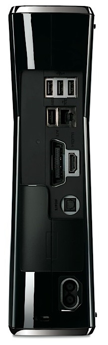 * Entrada especial para o Kinect (uma espécie de USB por onde mais energia consegue passar, de modo que o Kinect não precise ser ligado separadamente à tomada, como vai acontecer com quem for usá-lo no Xbox 360 atual).